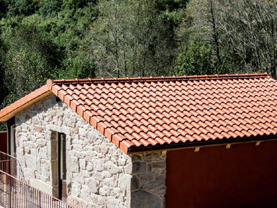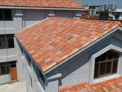以西班牙瓦傳統岩紅色裝飾屋頂,懷舊風屋瓦呈現。